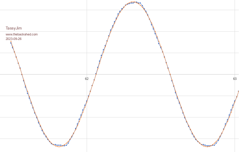 Blue is the actual measurement, red is a calculated sine wave.