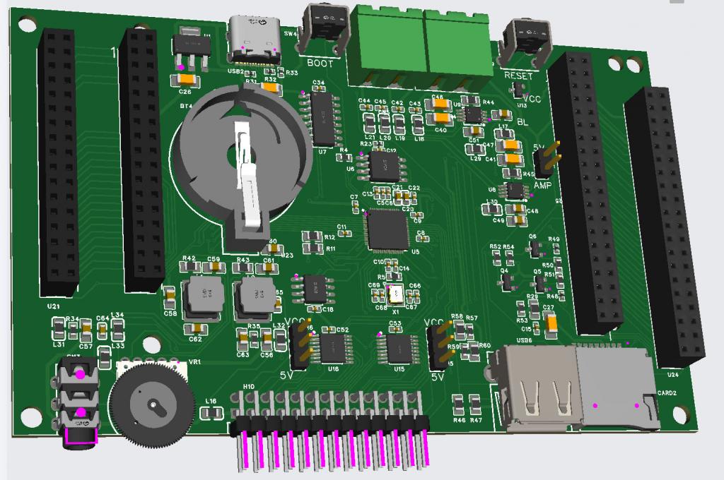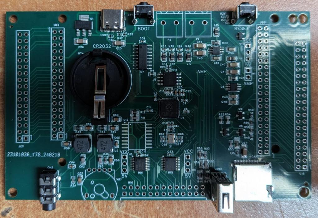 The PCBs have arrived and electrically they work perfectly Physically they are poor to rubbish The concept is a single board computer with ultra-fast graphics It supports any of the standard 16-bit parallel TFT displays and includes the usual RTC and audio (including stereo amp). To keep costs down I left most of the non-surface mount off the build by JLC hence the missing bits on the board. The physical issues are: Upright USB socket means that the display has to be spaced off the board using a stacked socket USB connector and volume control too close to the 26-pin expansion connector Speaker connectors too close for individual sockets and not spaced correctly for a 4-pin socket Loading the MMBasic firmware is a bit idiosyncratic. Obviously it uses the PcoMiteUSB firmware variant but doesn't use the standard serial console pins so the process is as follows: Flash the firmware via the USB-A port Connect a keyboard Enter the following commands blind: OPTION PICO OFF, OPTION SERIAL CONSOLE GP28,GP29 Then you can connect to a comuter and finish configuring or continue with the keyboard as per the instructions on the back of the PCB I've re-done the physical layout of the PCB to fix the issue and will post the designs on the PicoMiteUSB github page soon. Cost for 5 boards fully built as pictured £115. ![]() ![]() New layout: ![]() |