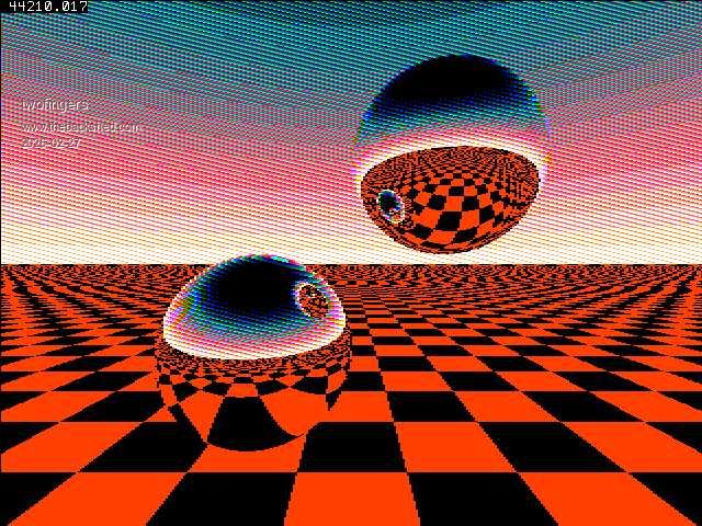Wauw. This is beautifull. I did not have VGA system at hand, so I converted it to Game*Mite (any color LCD would do). But this is amazing. It feels like we could convert the whole of the universe into a few lines of MMBasic. Thank you. Between your demo's there are some real gems, pure diamond, and this is one of them.