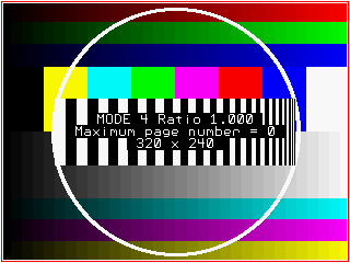Updated to handle the new modes and added a staircase to better understand some instability I can see in some modes. ' test card for Picomite VGA and HDMI ' TassyJim September 2024 OPTION EXPLICIT OPTION DEFAULT NONE DIM INTEGER wd, ht, wbox, sh, x, w, n, nn, m, mp, cd, maxMode, keepMode, widesc, mk DIM FLOAT a, defaultMode DIM k$, imgtitle$, fname$, imgRes$, pages$ DIM INTEGER c(8) c(0) = RGB(BLACK) c(1) = RGB(YELLOW) c(2) = RGB(CYAN) c(3) = RGB(GREEN) c(4) = RGB(MAGENTA) c(5) = RGB(RED) c(6) = RGB(BLUE) c(7) = RGB(WHITE) c(8) = RGB(64,64,64) IF INSTR(MM.DEVICE$,"HDMI") THEN maxMode = 5 ELSE maxmode = 3 ENDIF IF MM.VRES MOD 240 = 0 AND MM.VRES <> 720 THEN widesc = 0 ELSE widesc = 1 ENDIF a = 1 defaultMode = 3 CLS DO IF m = 0 THEN MODE 1 CLS TEXT 320,100, "Video mode test",cm,5,1 TEXT 320,180, "Ratio = aspect ratio used in the circle command",cm,1,1 TEXT 320,220, "Q to quit, P to save page as a BMP",cm,3,1 TEXT 320,260, "Up Down arrow to change resolution",cm,2,1 TEXT 320,300, "+ - to change circle aspect ratio",cm,2,1 ELSE IF keepmode THEN ' only change resolution if needed keepmode = 0 ELSE CLS ' erase video memory before mode change ON ERROR SKIP MODE m CLS ENDIF wd = MM.HRES : ht = MM.VRES nn = INT(wd/80) imgtitle$ =" MODE "+STR$(M)+" Ratio "+STR$(a,1,3)+" " imgRes$ = " "+STR$(MM.HRES)+" x "+STR$(MM.VRES)+" " pages$ = " "'Maximum page number = "+STR$(mp)+" " wbox = wd / 8 ' primary colours FOR x = 0 TO 7 BOX x*wbox,ht/4,wbox,ht/2,0,c(x), c(x) NEXT x ' full gradient for each primary colour and greyscale FOR x = 0 TO wd-1 sh = 255*x/wd LINE x,0,x,ht/12,1,RGB(sh,0,0) LINE x,ht/12,x,ht/6,1,RGB(0,sh,0) LINE x,ht/6,x,ht/4,1,RGB(0,0,sh) LINE x,ht*9/12,x,ht*10/12,1,RGB(0,sh,sh) LINE x,ht*10/12,x,ht*11/12,1,RGB(sh,0,sh) LINE x,ht*11/12,x,ht,1,RGB(sh,sh,0) LINE x,ht/2,x,ht*3/4,1,RGB(sh,sh,sh) ' greyscale NEXT x ' circle to check aspect ratio CIRCLE wd/2,ht/2, ht*15/32,3,a,c(7) sh = 0 x = wd/2 - 55*nn/2 ' black white bars to check monitor bandwidth FOR w = 10 TO 1 STEP -1 FOR n = 1 TO nn sh = 255 - sh LINE x,ht*3/8,x,ht*5/8,w,RGB(sh,sh,sh) x = x + w NEXT n NEXT w ' horisontal lines to check for raster stability x = wd/2 - 50*nn/2 sh = ht*5/8-5 BOX x,sh,50*nn,5*nn+4,1,RGB(BLACK),RGB(BLACK) sh = sh + 2 FOR n = x TO wd/2 + 50*nn/2 - 10 STEP 10 LINE n,sh,n+9,sh,1,RGB(WHITE) sh = sh + 1 NEXT n ' white and red border to check that image fits on monitor BOX 0,0,wd,ht,3,c(7) BOX 1,1,wd-2,ht-2,1,c(5) ' title IF wd > 600 THEN TEXT wd/2,ht/2-15, imgtitle$,cm,4,1 TEXT wd/2,ht/2, pages$,cm,4,1 TEXT wd/2,ht/2+15, imgRes$,cm,4,1 ELSE TEXT wd/2,ht/2-11, imgtitle$,cm,1,1 TEXT wd/2,ht/2, pages$,cm,1,1 TEXT wd/2,ht/2+11, imgRes$,cm,1,1 ENDIF ENDIF PAUSE 100 ' wait for keypress DO k$ = INKEY$ LOOP UNTIL k$<>"" ' SELECT CASE k$ CASE "Q","q" EXIT DO CASE "P","p" fname$ = MID$(imgtitle$,2)+".bmp" TIMER = 0 SAVE IMAGE fname$ ' PAGE WRITE 0 TEXT wd/2,ht/2,"Saved as "+fname$+" in "+STR$(TIMER/1000,3,2)+" Sec" ,cm,1,1 DO k$ = INKEY$ LOOP UNTIL k$<>"" CASE CHR$(128) ' up arrow m = m - 1 IF m < 1 THEN m = maxMode IF m = 4 AND widesc THEN m = 3 CASE CHR$(129) ' down arrow m = m + 1 IF m > maxMode THEN m = 1 IF m = 4 AND widesc THEN m = 5 CASE "+" ' ratio plus IF a < 1.4 THEN a = a + 0.01 keepmode = 1 CASE "-" ' ratio minus IF a > 0.75 THEN a = a - 0.01 keepmode = 1 CASE ELSE ' same as down arrow m = m + 1 IF m > maxMode THEN m = 1 IF m = 4 AND widesc THEN m = 5 END SELECT LOOP MODE defaultMode ' restore original mode before ending program CLS END VK7JH MMedit |