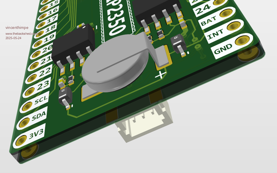 i thought about the dual diode but the BAV170 is typically a SOT23. The smaller version (sot 323 or 523) is only made by one manufacturer, and lcsc doesn't have it, or very limited. Those diodes need to be very low leakage. The cell is very small capacity (3mAh with a max allowed discharge current of 10uA. The current draw from vbat is around 3.5 microamps. The BAV17x leakage ( reverse) is in the order of 5pA. just spotted a mistake :i need to change the value of R18. the charge current would be to high for the little cell. max 100uA. so i need 30k or more. R17 is a current limiter for the RTC. if that device has a catastrophical failure it won't short the cells R18 is a charge limiter for the on-board cell (if installed) There's 2 use scenarios : 1) Self powered or usb powered device WITHOUT on-board battery. - install the on-board cell and done. the cell will be charged when the device is powered. - don't install on-board cell but hook up a 3v non-rechargeable coin (think CR2032 and likes) cell to BAT pin. D4 blocks any reverse current to a non-rechargeable cell 2) battery powered device - install on-board rechargeable cell and done. - don't install on-board but feed 3.3 volt into BAT. User is responsible how that is made from the system battery. if external BAT voltage is used there is no on-board cell. I's either an external cell , or the internal cell. not both. NO need to depopulate or populate parts. no BOM change. install everything. ( except the cell) |