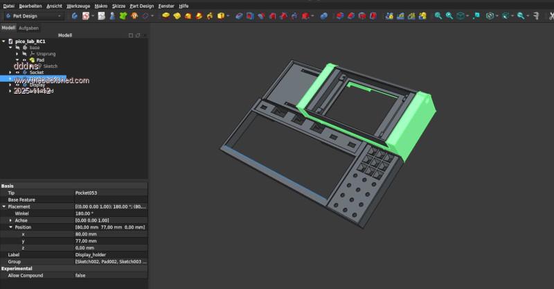 I decided to turn around the display and the holder by rotating the the parts at their base feature and adjusting the offset: