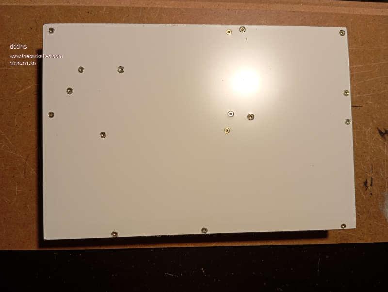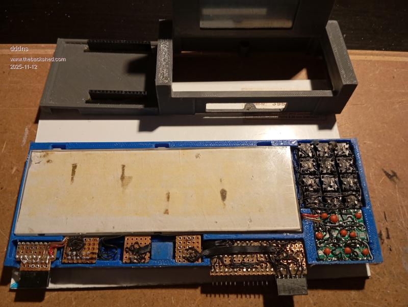 First I fitted in the acrylic and then build it up. Of cause a 3x3 matrix would cost 1,50 and having all on carrier pcb's would be much nicer.. So I build it in early 80's style :)