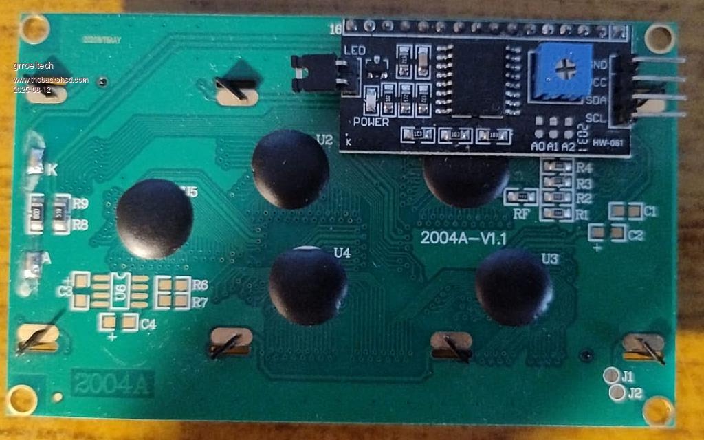 The LCD screen and the I2C converter operate at 5V. This can be solved with a level shifter or by converting the two 4K7 pullup resistors on the bus module from 5V to 3V3, which also works fine.