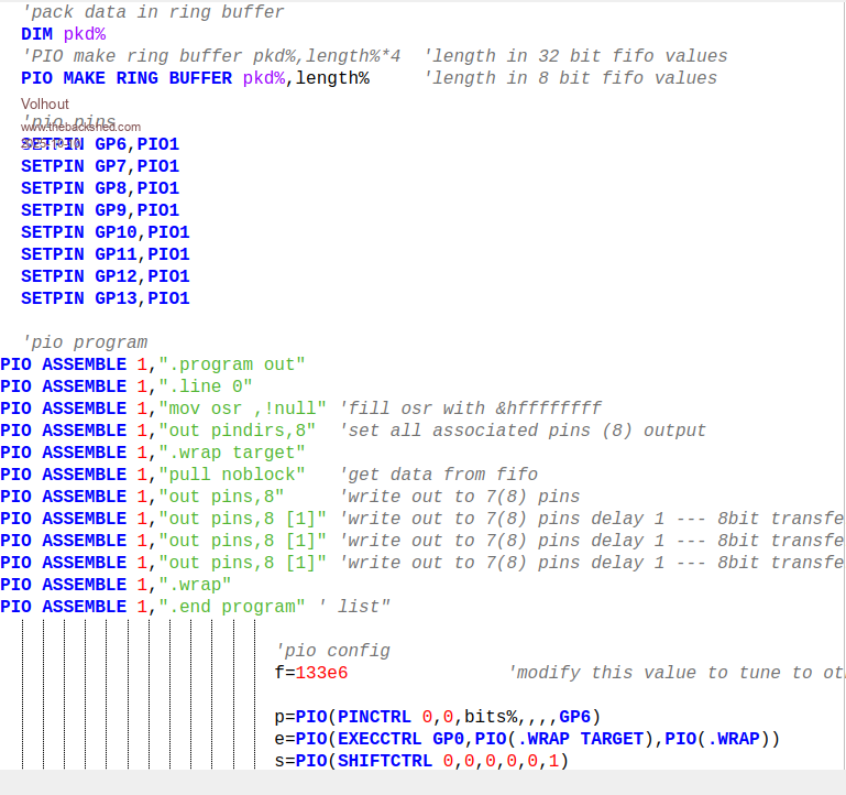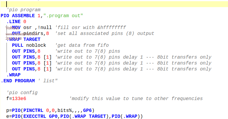 The PIO assemble commands are all at the left edge