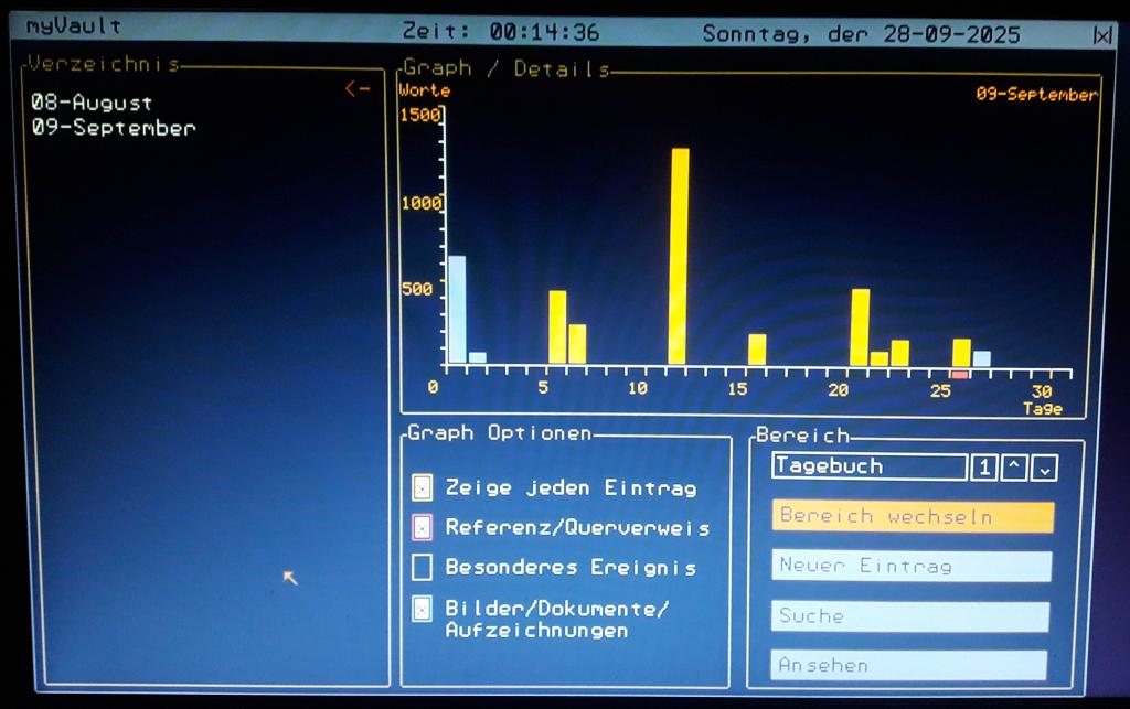 Hello all! Maybe this is more a question for Peter, but maybe I am blind and anyone knows a solution. I am heavily working on the translation of my journal/diary program including GUIs for the PicoMite HDMI (USB!) version, because I started this project in pure German. The Problem: I was using the PicoMite HDMI PS/2 version, in this version I am able to read in the raw ASCII value via the command: MM.INFO(PS2) '(Reports the last raw message received on the PS2 interface if enabled.) Why would I do this? Simply because this allows me to read in the raw key of German Umlaute (ÄäÜüÖöß) and map then to a custom font made by Martin, which has all the German Umlaute in it. So for converting this already huge program, I have written, to the USB version, I desperatly need to read in the raw USB keys of those Umlaut-Keys, too. I can't find any command for this. I was optimistic that: keyDown(n) will do the trick, for the USB version - but it doesn't show anything when I press on my German Keyboard "ÄÜüÖöß" - so there is no solution for me, to translate my software for the German USB version (and after that to the english USB version). I really hope there is a solution for that, if not I have to stick to the PS/2 version - which is ok, but sad, since Peter fixed the missing keys on the USB version many iterations ago Only for the interested, a short program description: --------------------------------------------------------------- Here are some images of the already finished (german version) of my diary/journaling software, it also includes a text editor, excessive graph options to show different parameters. And it doesn't stop there: you have in fact three different working areas: diary/journal = German = "Tagebuch" health = German = "Gesundheit" notebook = German = "Notizbuch" in every area (German = "Bereich") you have different visualisation parameters for the graph. For example you can track your: pulse, blood pressure, stress, words you have written on the specific entry, and you can even add own comparison parameters. There is a search function, which allows to search a whole month for specific words. The program is split into six different (chained) programs. ----------------------------------------------------------------- ![]() ![]() Greetings Daniel Edited 2025-10-02 17:50 by Amnesie |