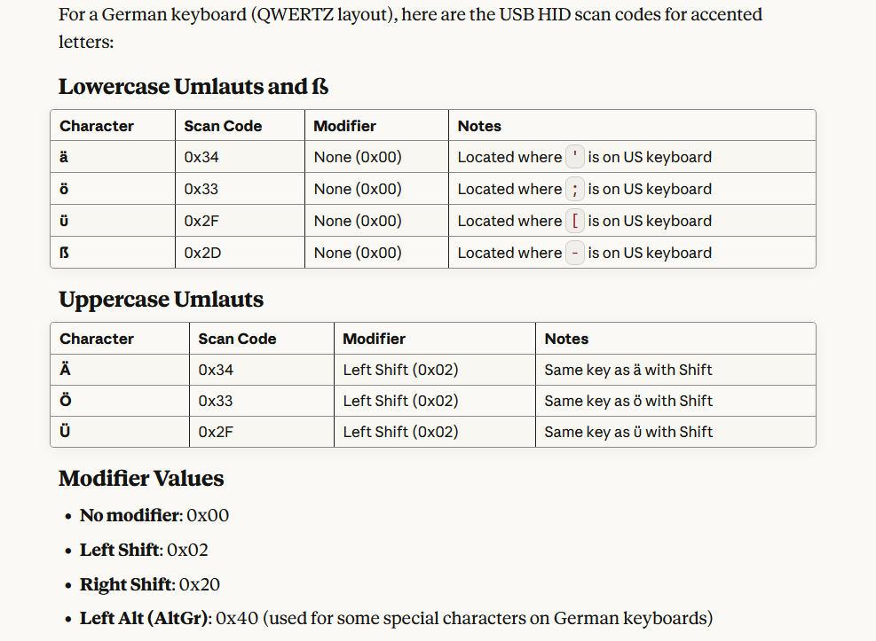 If you provide a list of the USB scan codes for all relevant keys and required modifiers associated I will see if I can do anything. I just need all the required unique pairings I don't care what they mean e.g. code modifier 0x87 ALT 0x87 none ... |