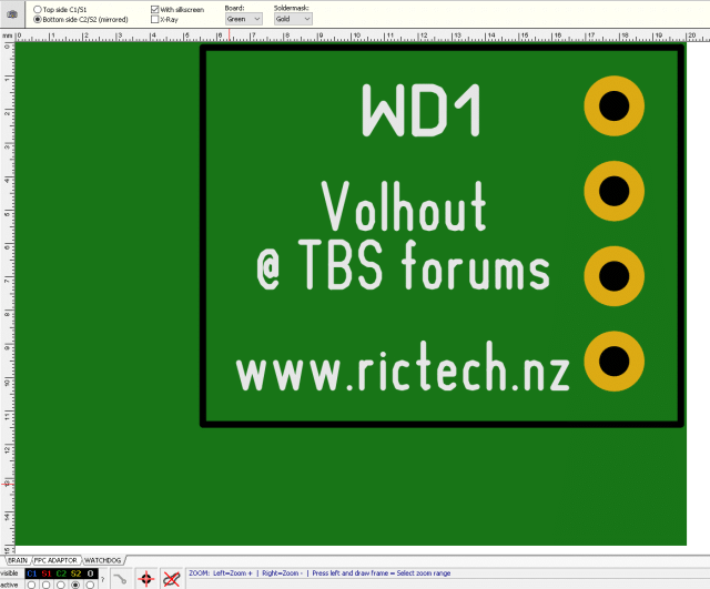 @ Mick: The solder-pads are on a standard 2.54mm grid, so I could EASILY just add some holes on the pad-centers, then you could have either-or. Other changes noted, will do. @ Volhout: Can I assume you have actually built this circuit? It looks electronically sound, but it would be nice to know it has been tested, before I get boards made. @ Mick & Volhout & everyone else: I will make the C1 footprint 0805/1206, so you can choose whatever works for you. ![]() EDIT: Here you go... ![]() ![]() Edited 2025-10-09 17:55 by Grogster Smoke makes things work. When the smoke gets out, it stops! |