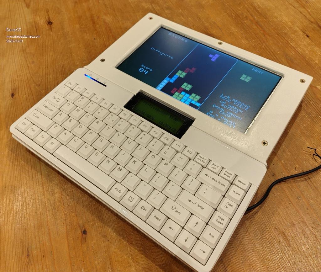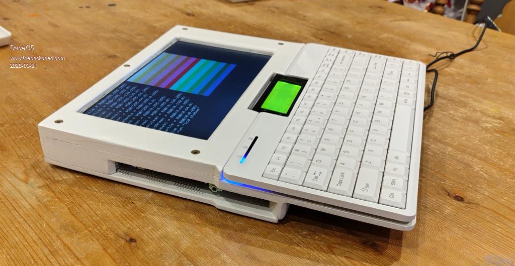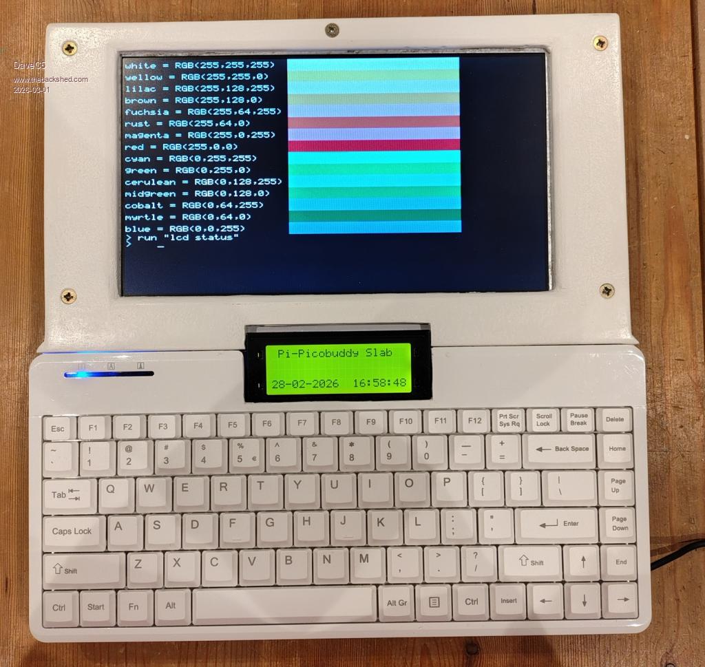 I got a bit fed up with working on a bunch of parts spread over the table, so I faffed about with some old MDF drawer-bottoms, a 10" car LCDTV, a Perixx PS2 keyboard and a Pi-Picobuddy board to make something a little more user-friendly.