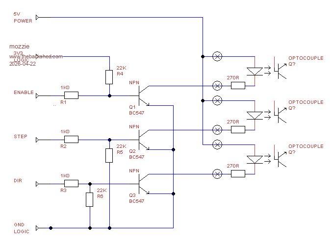 G'day, Phenix, variable speed on the x-axis is required, as the thickness of the job changes you have to take very light cuts and slow the feed rate, especially when making or thinning shims. Bryan, pretty sure you can use the same limit input for both ends of an axis, but you need to specify all 3 axis even if not using them, IE: STEPPER HWLIMITS GP20,GP21,GP22,GP20,GP21,GP22 Agree that the X and Y axis are not going to matter much regarding backlash, need to pass the ends of the job on the X and overlap the passes on the Y anyway, so should be all good. The Z-Axis on the machine here is a leadscrew driven by a wormgear, so can probably hook a motor almost directly to it. That's after I move a ton of other gear to gain access to it again I posted on the other thread regarding the enable signal being the wrong polarity, however from memory most of the stepper driver boards it is really a DISABLE signal so the current setup will work with the following circuit: Transistor and resistor values are what I have most of, pretty much anything NPN and similar values should work. Regards, Lyle. |