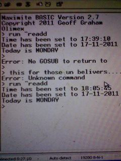 yes i do realise that i do have some sense of reality ...the main thing i was trying to do is get an external "RTC" running and yes it does state that but if u look earlier when it clocked over the "24:00 " hour mark well this is profe that ..the "RTC" is functioning correctly its just that the "write to RTC" is not set correctly in the soft ware ...belive me when you have downloaded as many files that you cannot rember after a while which ones you have modded to fix these errors...its a bit much after a while but i see you are in aussie land r you on the west coast or east...///...///technicians do it with least resistance