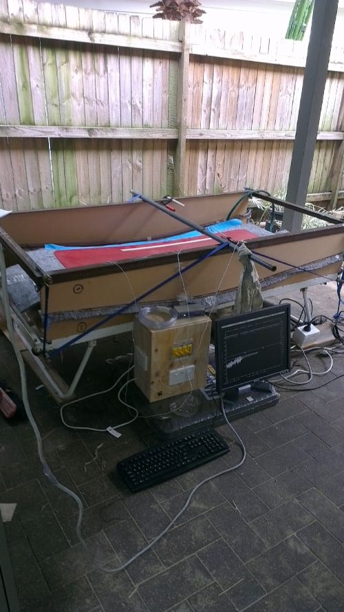 In the true spirit of backsheding the other equipment I use is also home made; a rocker table for vacuum forming the compound curves (re-purposed beds), a silicon heat blanket (scrap fibreglass and moulding rubber) for controlling the curing process to make it really strong and a vacuum pump ( a re-purposed fridge compressor). Here it is in all its rustic glory!