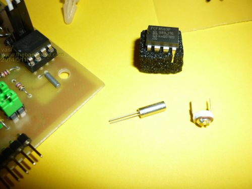 I bought a while ago the right crystal and another PCF (this one is borrowed from the Polish board) along with a trimmer capacitor, but I can't find them...