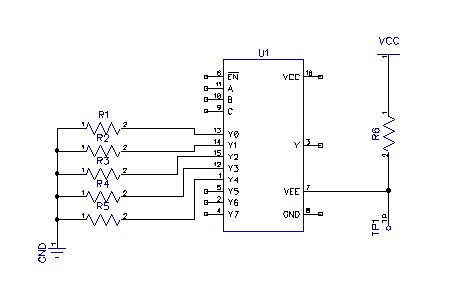 I tie all of one side of the sensors (r1 - r5) to ground, and the other side in to the inputs of the 4051. The A/D output of the 4051 will have the 10k (r6) to Vcc, so that each time I read a sensor it is effectively in a voltage divider configuration. Or have I gone completely off track. Many thanks Marcwolf Coding Coding Coding.. Keep those keyboards coding.. RAW CODE!!!!! |