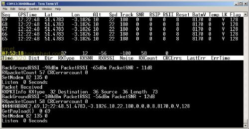 The screen shot is of the receiver displaying the received telemetry from a tracker.