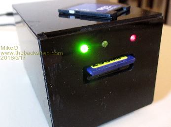 This device is a dual SDcard logger which stores all the sensor data as it arrives via the wifi network, it writes the data to daily files but to both SDcards. This allows you to take remove one the cards and access it in a computer to take off files etc, then when you re-insert into the logger it updates the card with missing data.