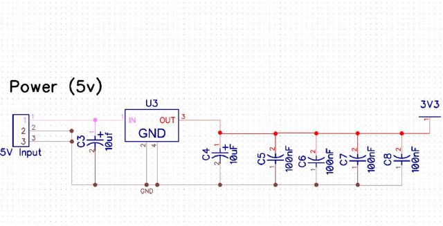 Anyone any good with Power supply design? The 3.3V circuit is attached below, but it's giving problems. Unless an EXTREMELY clean 5V supply is connected it is corrupting the Micromite when the power is disconnected. So badly that it has to be reflashed with Micromite Basic and the complete program typed in again. Any ideas/thoughts/suggestions on why this is, or how to fix it? I suspect I might have "too much capacitance" and it's holding a charge when the power is disconnected and draining slowly corrupting the micromite. By "slowly" I mean slow in computer terms... miliseconds rather than microseconds. I want to keep the 3.3V regulator the same pinout but I don't mind changing the external circuitry. OR is it simply a case that the 5V input has to be Extremely clean? |