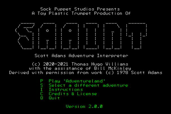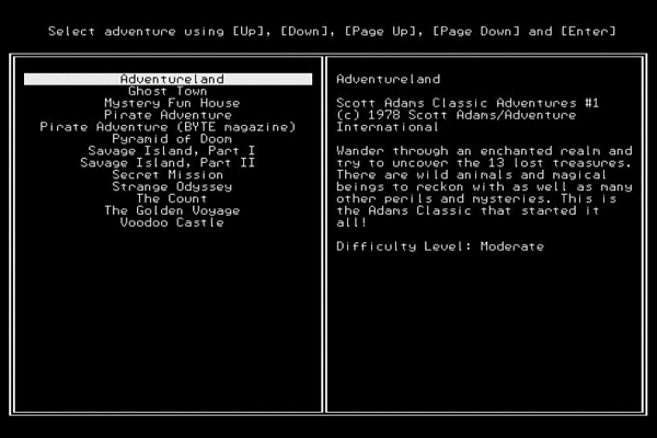 Hey folks, I am pleased to announce the release of SAAINT, the Scott Adams Adventure Interpreter for the Colour Maximite 2. This is based upon the "Pirate Adventure" interpreter included on "The Welcome Tape" and its creation was instigated by Bill/@Turbo46 who did the early running with extending the interpreter. I then came in and did some rework, dragged my feet and then eventually added some bells, whistles and unnecessary lily gilding With the kind permission of Scott Adams this release is distributed with the 12 original Scott Adams Classic Adventures. You can also find a dozen or so more adventures by following the links from the SAAINT git repository. Please note that Bill and I did not test all the adventures to completion (or even a significant fraction of them) and I would be eager to hear if you encounter any issues - though be warned, most of the spelling mistakes are Scott Adams originals. Get it here: https://github.com/thwill1000/cmm2-saaint-public/archive/refs/tags/release-2.0.0.zip Read more about it here: https://github.com/thwill1000/cmm2-saaint-public ![]() ![]() Happy adventuring, Tom Edited 2021-06-09 08:58 by thwill MMBasic for Linux, Game*Mite, CMM2 Welcome Tape, Creaky old text adventures |