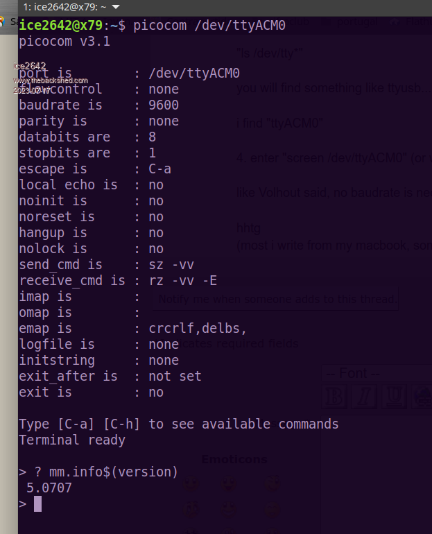 4. enter "screen /dev/ttyACM0" (or what tty you will find)