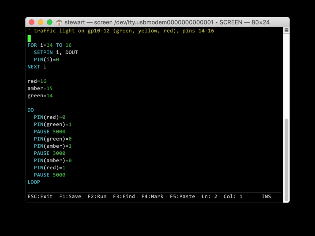 * If the Raspberry Pi Pico is the only type of its kind attached to a Linux computer, it will be attached on the port /dev/ttyACM0