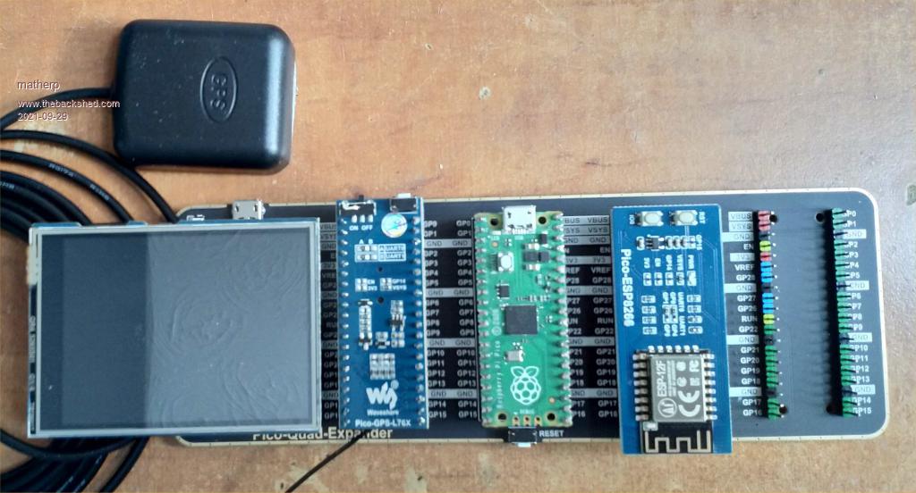 By default the GPS and ESP8266 communicate on COM1 (GP0, GP1) but both can be modified to support COM2 (GP4, GP5).