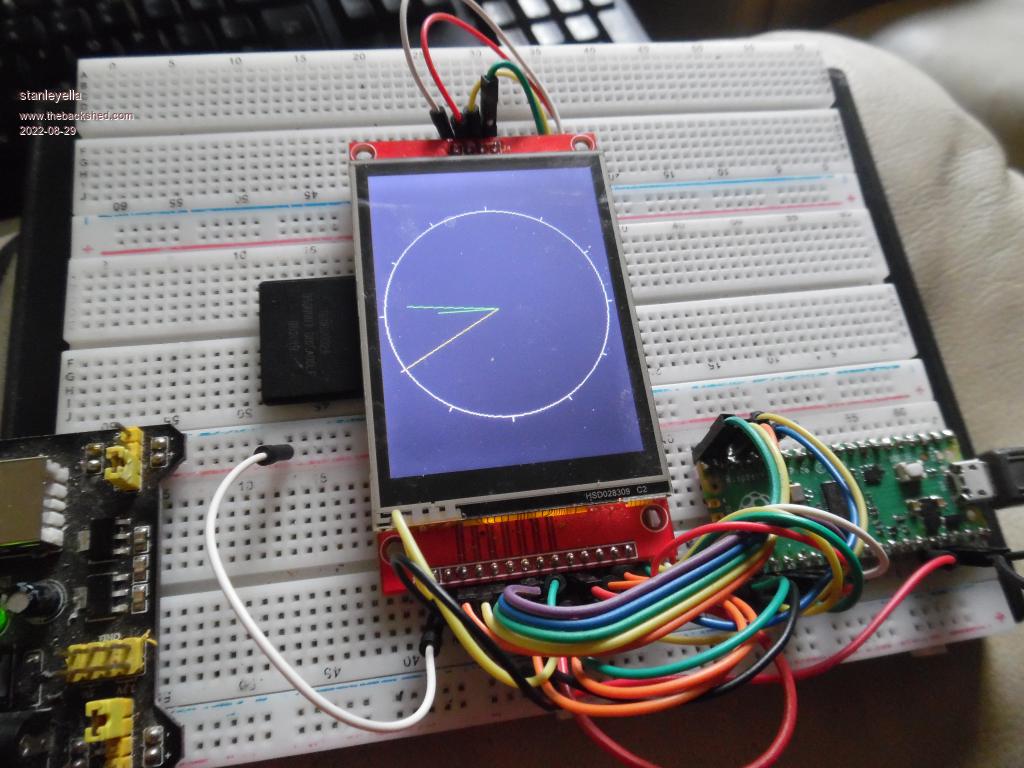 I had to comment '----------get time from I2C RTC----------' 'RTC gettime 'waitloop: 'If Val(Mid$(Time$,7,2)) = 0 Then GoTo waitloop Because I do not have it and gave an error. It now works. clocks are a good way of learning mmbasic trigonometry. worked picomite ili9341 |