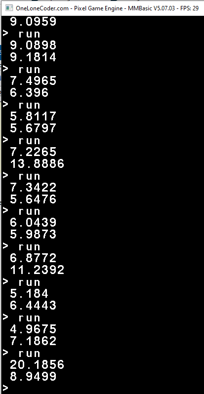 Although, curiously, when I test the same routine in QBjs, the result is consistently 2.0000000ms and the only flyer was something like 2.999999ms
