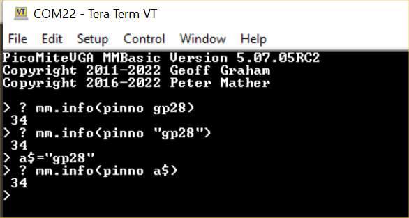 MM.INFO(PINNO n) now accepts a string literal, a string variable or an unquoted GPn designation
