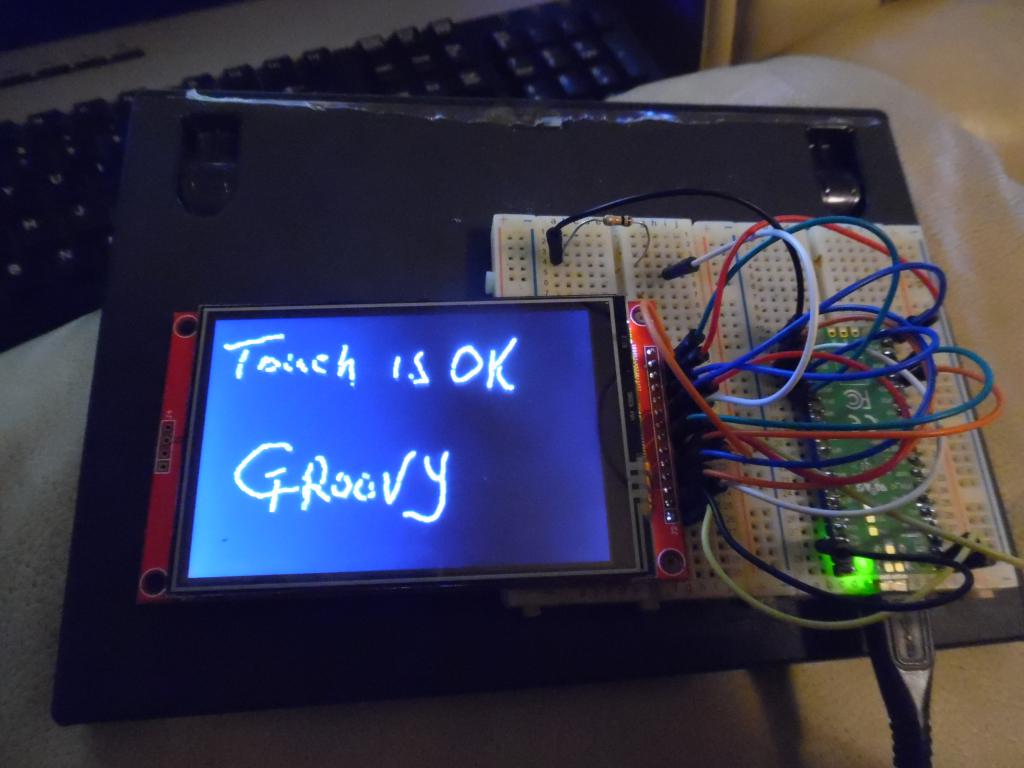 Tested it with 1n4007, 1n914, 1n4148 and resistors from 3k3 to 10k. All work with this test program. https://www.thebackshed.com/forum/ViewTopic.php?FID=16&TID=11419&LastEntry=Y#194465#194465 Perhaps the touch chip was damaged if you connected it without a resistor or diode in series with LCD_SDO. When idle it is active low so when the touch T_DO goes high it is driving in to a very low resistance (about 40 ohms). To test this remove the diode and resistor and leave LCD_SDO unconnected. Then try to calibrate touch. If touch won't work with nothing else sharing MISO it may be damaged. |