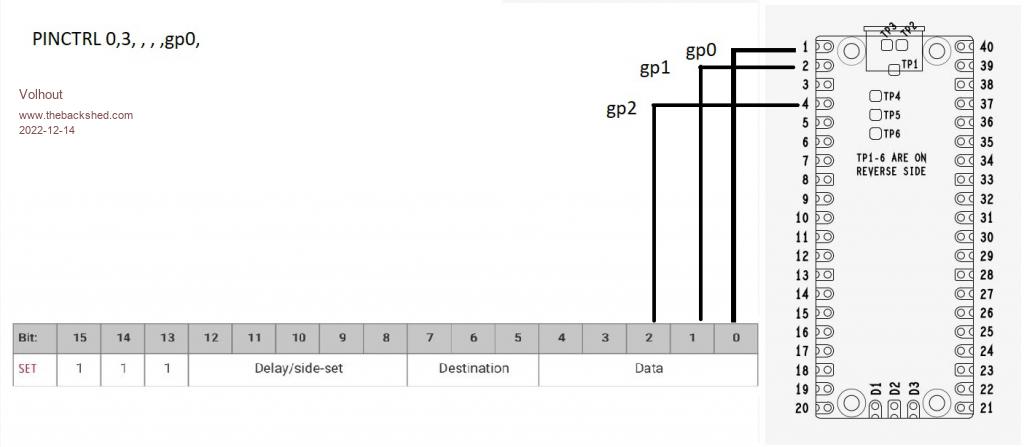 As far as I can see ahead the next chapters will be: chapter 2 - explaining the exercise with pin configurations - explaining PIO INIT MACHINE - explaining PIO STOP - new: execution speed and 666Hz - new: DELAY field - new: ARM spying on PIO output - new exercise chapter 3 - explaining exercise solution - new: the SPY pin (PIO checking ARM I/O) - new: PIO PROGRAM versus PIO PROGRAM LINE - new exercise chapter 4 - explaining exercise solutions - new: variables X and Y - new exercise chapter 5 - explaining exercise solutions - new: FIFO and the ISR - new: measuring pulse width and transfer to MMBasic - new exercise chapter 6 - explaining exercise solutions - new: FIFO and OSR - new: generating pulse width commanded from MMBasic - new exercise chapter 7 - explaining exercise solutions - new: SIDE SET alternative to SET - new: controlling GP0 and GP22 in one state machines - new exercise chapter 8 - explaining exercise solutions - new: WRAP and WRAP TARGET replacing jump - new exercise chapter 9 - explaining exercise solutions - new: shifting IN data (SPI) - new: reading a NES controller in PIO - new exercise chapter 10 - explaining exercise solutions - new: shifting OUT data (SPI) - new: driving a 74HCT595 output shift register - new exercise Volhout PicomiteVGA PETSCII ROBOTS |