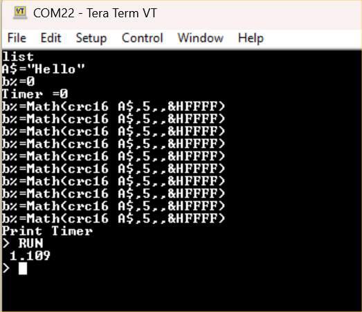 ? "CRC32        ";(t-tr)*1000;" us, CRC = &h"; hex$(CRC%)