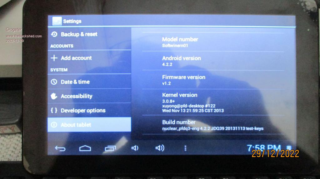 Doing my Christmas clean-up, and came across an old tablet I had totally forgotten I even had. It is a 9" model, Android 4.2.2, kernel 3.0.8+. No idea of CPU and RAM specs, as there is no label on it, and settings from Android back then don't seem to give that to me, unless someone here knows how to find that out? Based on age, I would expect a dual-core ARM of some kind. Has Angry Birds on it, and it DOES connect fine to my WiFi, but every website you try to visit, it moans that it cannot be reached. I suspect this is cos of the circa 2013 browser app. Yes, system time is correct, so I suspect the sites at the other end are simply rejecting the request due to the age of the browser trying to connect. I am on the verge of throwing it in the skip, cos although it works OK, it is so old that it probably won't accept any kind of Android upgrade, won't load any websites due to app age, and is probably slower then even the cheapest new tablets these days.... ![]() ![]() If anyone in NZ wants it, PM me. Tablet and PSU free, but I would want you to pay for the courier bag. Smoke makes things work. When the smoke gets out, it stops! |