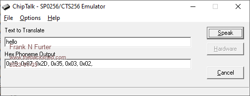 @scruss: It looks like the WAV were just hardcoded into "allophones.c". I don't think this does anything - except that it ALWAYS takes up space... It would be more interesting to emulate the CTS256 - then you wouldn't have to search for the matching phonemes every time... @Martin H.: Yes, you need the files from the linked ZIP. It was not my idea - ChipTalk (from the above link) works in the same way. Frank |