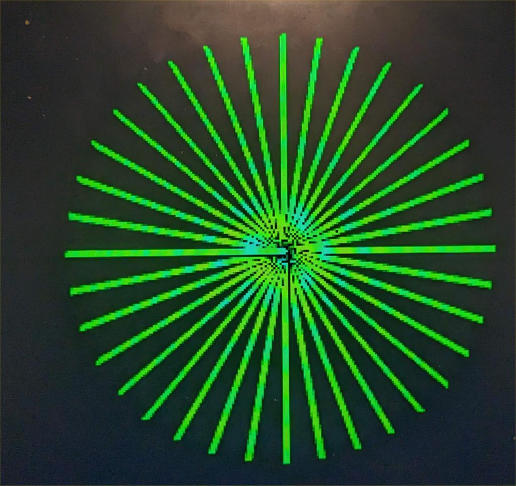 Version 5.07.06RC1 https://geoffg.net/Downloads/picomite/PicoMite_Beta.zip Changes from the last beta Improved error detection on some option commands to avoid lockups through pin conflicts Extra optional parameters for PIO(EXECCTRL PIO (EXECCTRL jmp_pin ,wrap_target, wrap [,side_pindir] [,side_en]) New sub-command LINE AA x1, y1, x2, y2 [, LW [, C]] Draws a line with anti-aliasing . The parameters are as per the LINE command. However this version will use variable intensity values of the specified colour to reduce the “staggered” quality of diagonal lines. In addition this version can draw diagonal lines of any width. NB: At low colour resolutions (PicoMiteVGA and framebuffers on the PicoMite) colours other than green may not show any advantage from anti-aliasing and colours including green (e.g.yellow) may show a different shade in the lower intensity pixels ON ERROR SKIP MODE 2 For i=0 To 360 Step 10 x=100*Cos(Rad(i)) y=100*Sin(Rad(i)) Line aa MM.HRes\2,MM.VRes\2,MM.HRes\2-x,MM.VRes\2-y,3,RGB(green) Next Do Loop VGA ![]() ST7789_320 ![]() Edited 2023-01-04 03:13 by matherp |