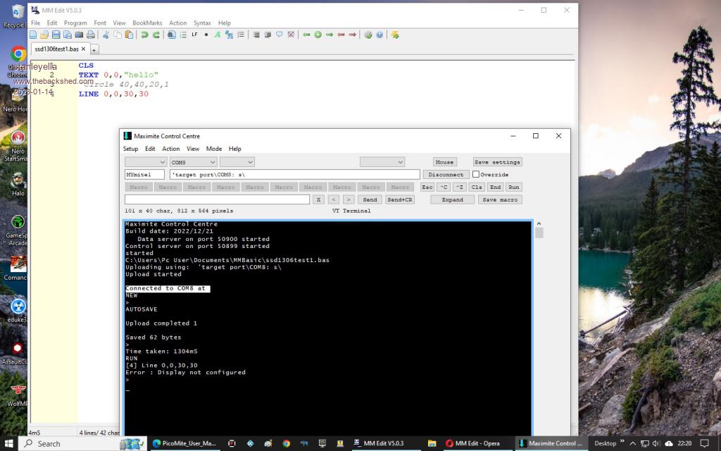 This displays text ok but not circles or lines says display not configured tested with built in editor teraterm and mmedit I'm doing something wrong, please advise.