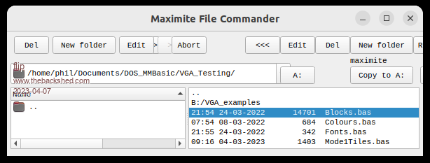 Hi Jim, Thanks for your latest MMEdit...running well on my new Linux machine...back in the MM world after a hiatus of few years but still regularly reading forum. (I had an issue on my Ubuntu 20.04 system caused by failed attempts at qt5 install which caused conflict - I removed them from 'Ubuntu Software' screen and all perfect..your instructions all good). Just one problem with File Commander, looks like it's sending the first field (Time) instead of the file name. > XMODEM SEND "07:54" Error : The logical drive number is invalid > Maximum Errors. Transfer Aborted. File transfer failed Finished > ![]() Thanks, Phil MMCC.zip Edited 2023-04-07 15:00 by flip |