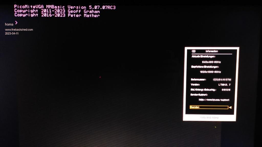 The output of the PicoMiteVGA does not match the default VGA settings on two monitors I have tried. The left hand side is cut off. Just required horizontal position adjustment on one but on the other moving the image to the right still left a missing strip on the left. Found a "Horizontal Phase" setting that fixed it.