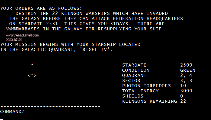 This is a version of the classic "STARTREK" text adventure game from 1978 that is adapted for picomite.