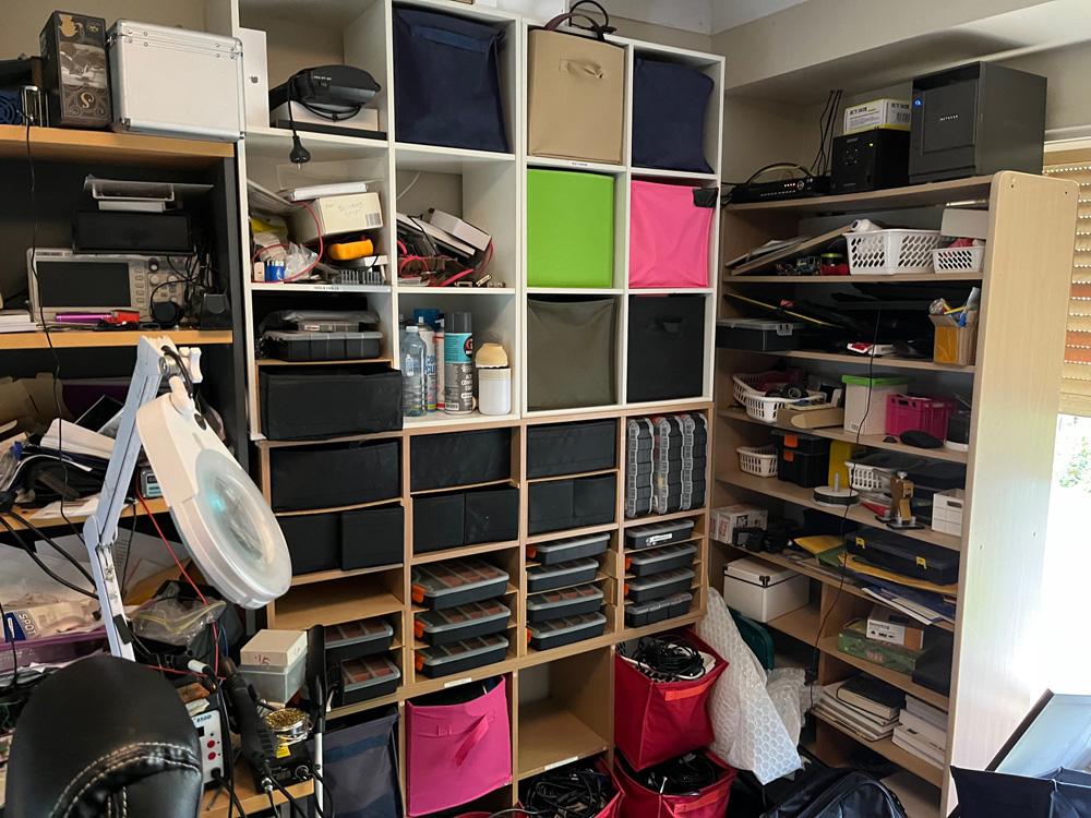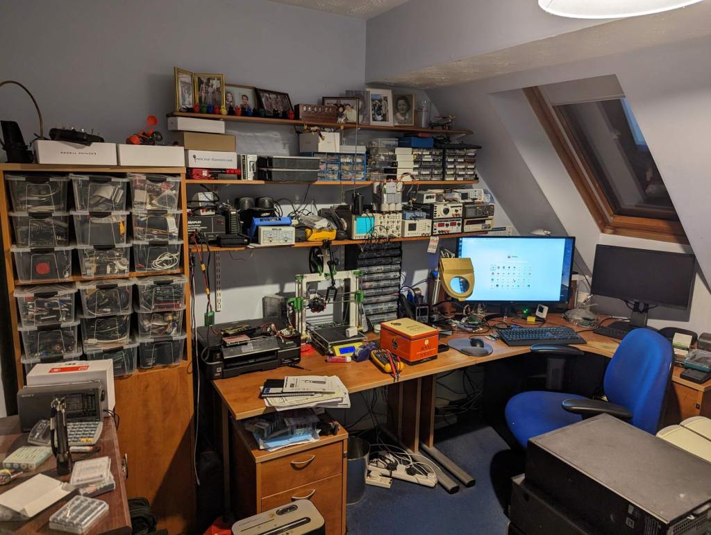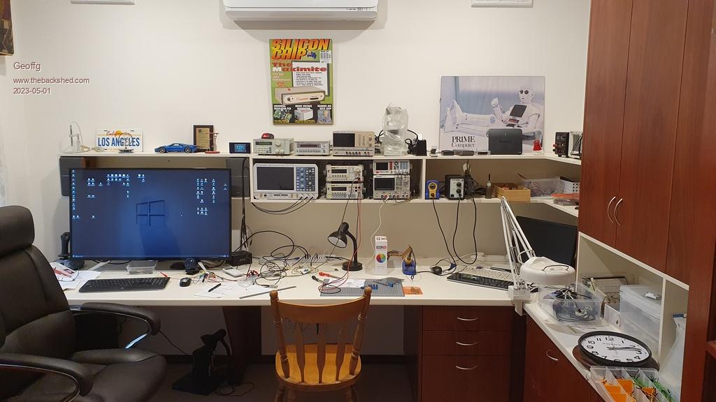 Hi lads, I think TIDY is a 4 letter word, I have a plethora of stuff piled on top of stuff that is piled on even more stuff, including on the floor in a very hap hazard manner. I have many half finished projects, somewhere, on my bench. Strangely I know where most stuff is. I have tried to tidy (sorry for swearing) the room up but I always get distracted when it’s starting to look good and there the tidying stops. I have a small shed also packed to the rafters with stuff, and a lot of stuff in the roof above my garage. I know part of this disease is the fact I hate throwing stuff away. I have several dead laptops, because I may need a mosfet or other part off one of them some time in the next 60 years. I am a disgrace to the Virgo community. Both the work spaces above look very organised and neat compared to mine. I will wait to see other embarrassing spaces before I post pictures and open myself up to ridicule. Regards, Mick Mick's uMite Stuff can be found >>> HERE (Kindly hosted by Dontronics) <<< |