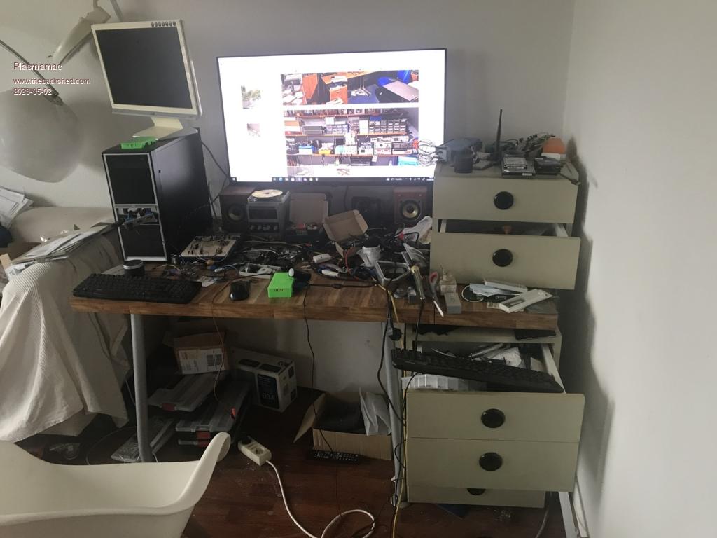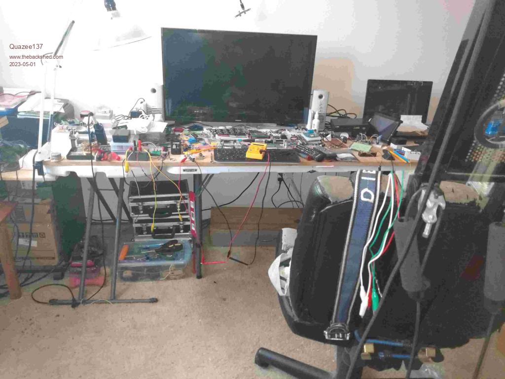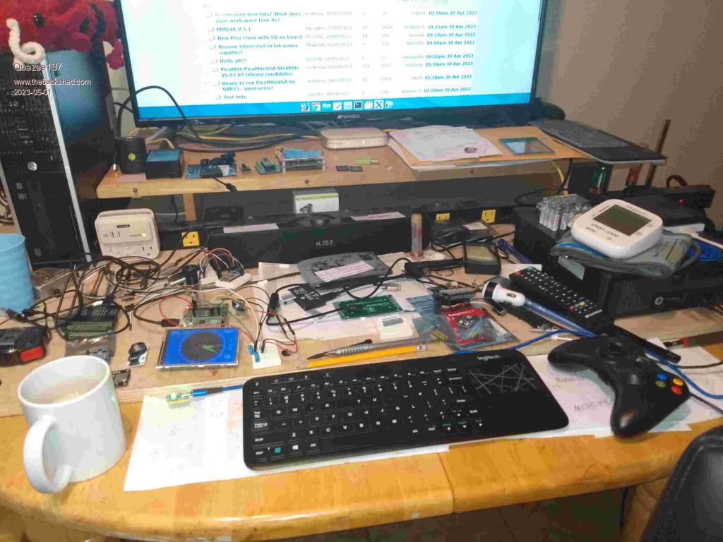 Some times limited space can be a blessing, I have to keep it clean between sessions: ![]() The bench on the left is usually busier with a VGA monitor and PicoGAME VGA that are currently on my day-job desk: ![]() Best wishes, Tom Edited 2023-05-01 16:36 by thwill MMBasic for Linux, Game*Mite, CMM2 Welcome Tape, Creaky old text adventures |
