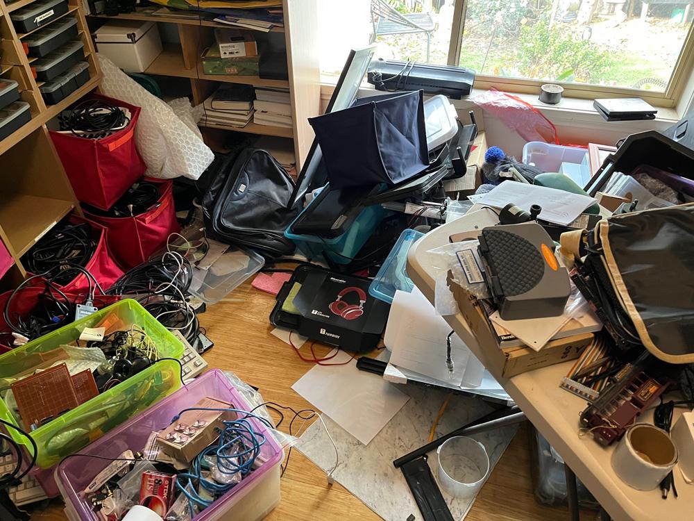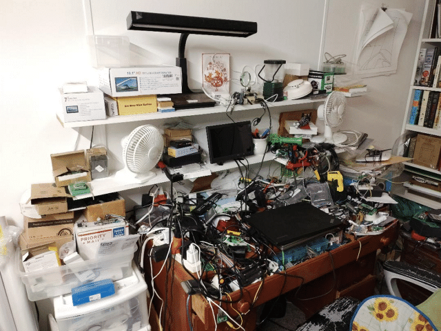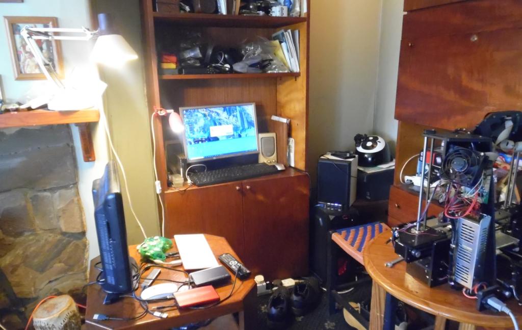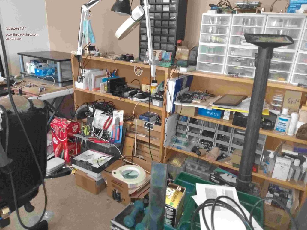 Thank you to those of you who are tidy enough (or brave enough) to post your photos. I have a new space setup in the house which my wife has affectionalty named my "Nerd Nook" which is currently in not too bad a shape...it hasn't been in existance that long yet.My shed is an absolute nightmare, and I'm sure that if I posted photos of it you would probably have me signed up to "Hoarders Anonymous". As others have mentioned, I have too many projects on the go, and I'm not prepared to let any of them go, and also too many interests. Retirement is just not coming fast enouh for me. As for tidying, I get it partially tidied and then never finish it to any level of satisfaction before I'm back into projects. I'm seriously concerned that it's turning into a significant fire hazard. Hawk |
