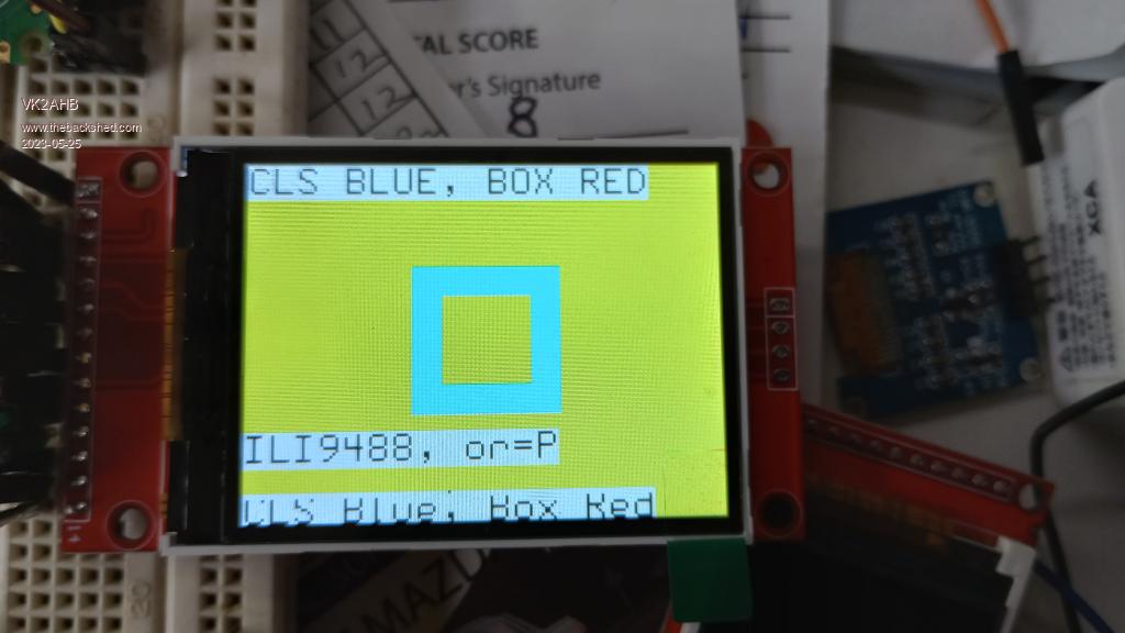 Progress of sorts! Using ILI9481 gave rubbish for most of the screen but GUI TEST worked in a small area. ILI9488 works sorta! Orientation is reversed, ie P=Landscape and colours are wrong. However, it's a start. |