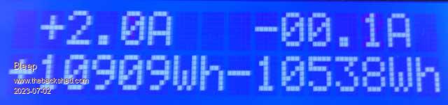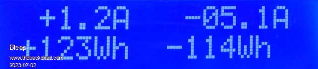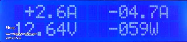 Display showing Battery Voltage and current output Watts