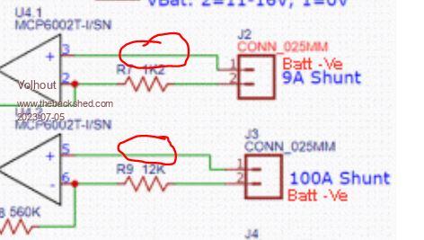 The current gain is set for 17.7mv @ 3.4A or 41.6mV @ 8A approx gain -64, the other OpAmp on the 100A shunt is a gain of approx 47.