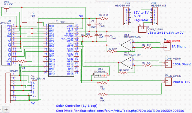 A couple of important totals are saved every hour, using VAR SAVE like Total Wh in/out and a couple of others, a log file is written to when a fault occurs and also every midnight. The code runs at an iteration rate of once per second, it did not need to be any faster, I also use the slowest CPU SPEED to save power, it takes about 5mA from the battery continuously, more when the relays are active, but then there is hopefully plenty of solar power. :-)