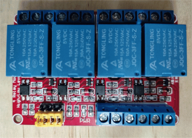 The relay module is from here: Aliex 4-relay module
