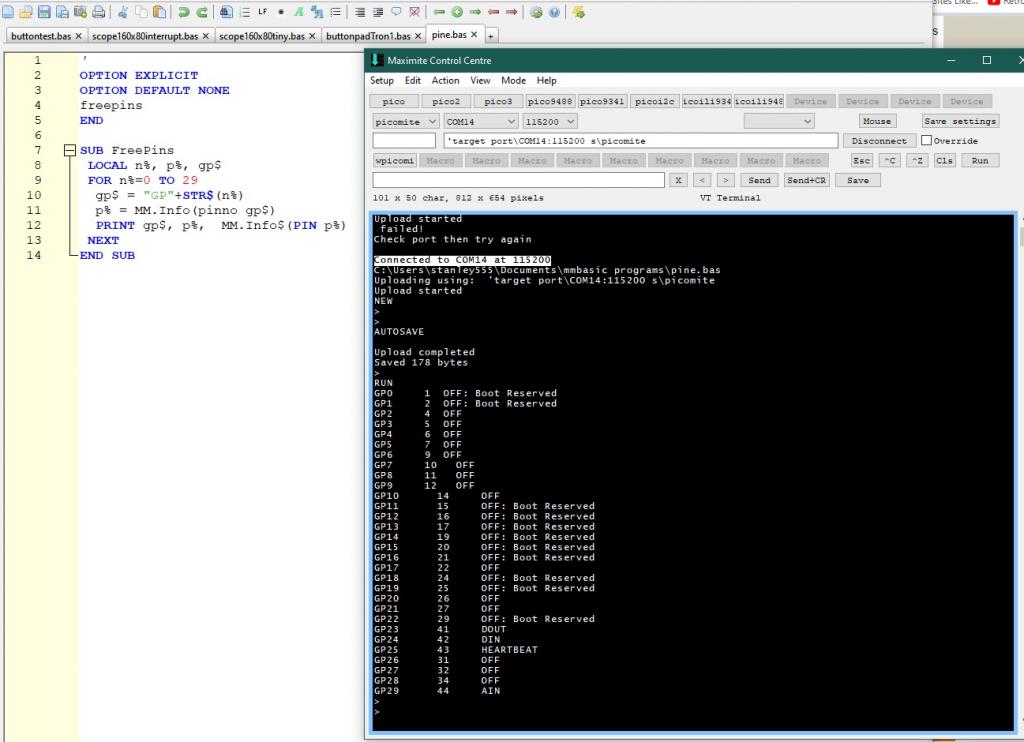Just bear in mind that the hardware pin number will only apply to an original PicoMite, whereas the GP number should be applicable to all RP2040-based systems. IMHO the use of hardware pin numbers should be discouraged.