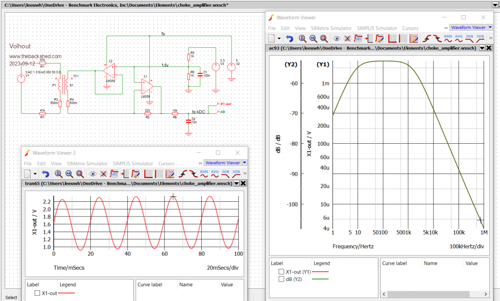 @Jim, Frank, I was amazed to see that you can use a common mode choke (ferrite material, not iron core) to measure mains voltage. The trick is to run it really low current, since it represents a really low impedance, and saturates easy. And terminate it in a virtual ground or other low impedance. To be usefull you need a common mode choke with a lot of turns on it. using common mode choke I just tried it with a 33mH commercial choke, and it actually works. When you drive the common mode choke core too hard, it shows similar distortion as Frank's waveform. Maybe this is something Frank can try as well. Just put a lower voltage at the input of the transformer (33k/33k voltage divider so you have 115V to drive the transformer). Never too old to learn... Regards, Volhout Edited 2023-09-11 22:54 by Volhout PicomiteVGA PETSCII ROBOTS |