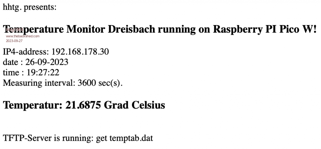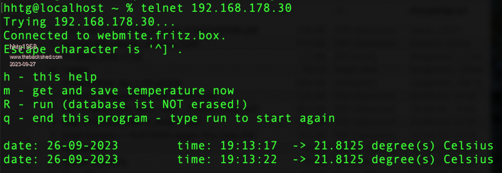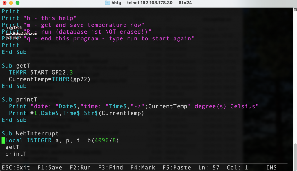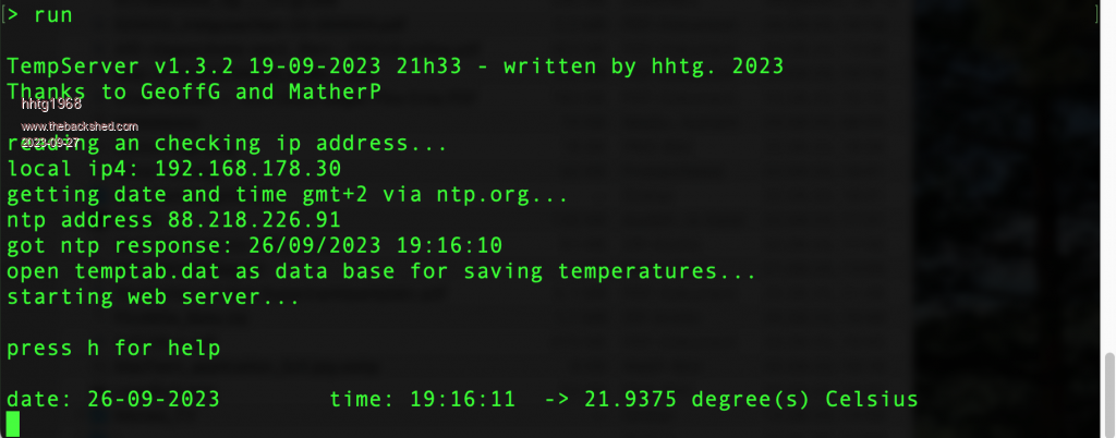 Hello. After visiting relatives in Norway for weeks i return to my picomites. Because of crashing my weather station (Raspberry Pi 3b) i started to create such a station with webmite. It based on the example in the manual by GeoffG. Its at the very beginning now. Main difference to the example is the "data base", a .dat file which is always growing (APPEND). Now i am coding a procedure to create a graphic from the data. The temperature is saved every hour. You can connect to the webmite via telnet, so you can edit the code on the fly. I took the DS 18b20 temperature sensor and a 4,7 K Ohm resistor. Because of programming in Basic it is so easy and fast. Next weekend i hope to complete the routine to create a png from the data of the last 24h or week in webServer on webmite. Here i show via fotos the webmite itself, connecting via telnet, edit via telnet, running and writing data to the data base file. I know its a very simple project (at this time). hhtg ![]() ![]() ![]() ![]() ![]() source code: source.bas.zip |