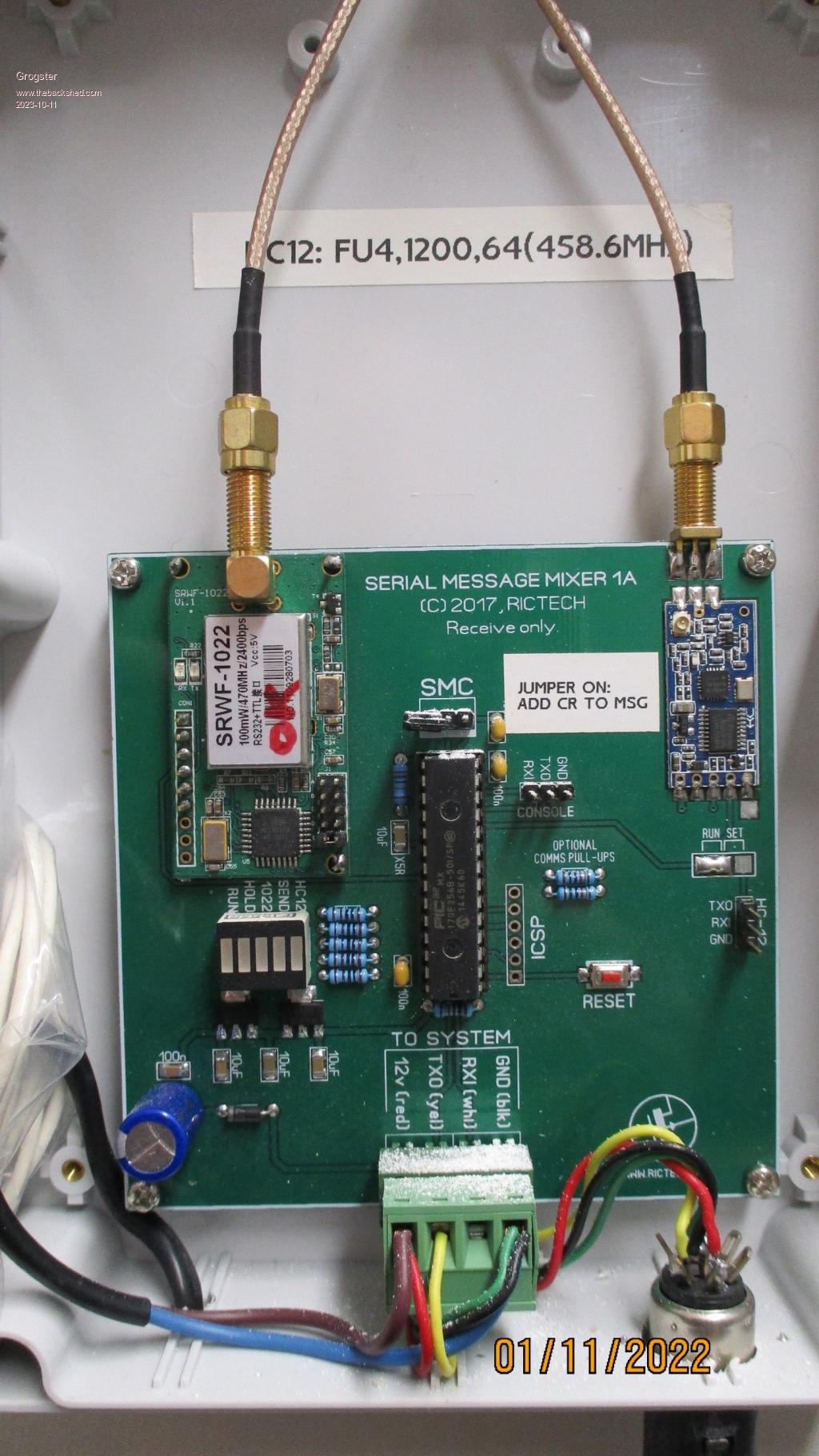 Re: CMM2 sales - yes, I only got five boards made at this stage. I did not want to stock up on heaps of them, if I can't move them. As an example of HC12's connected to a roof antenna, look at these photos: ![]() ![]() In this arrangement, we have TWO different RF networks, both wanting to talk to the base station. One network consists of SunrayRF SW1022 RF modules, and the other consists of HC12 modules. This unit listens to both networks, translates the messages, and sends them out to the base station for processing. With respect to the HC12's, I have the HC12 module connected to an SMA socket, which is then connected via coax to the output of a TV booster amp(Kingray SA122 from memory), with the input being connected to the base-loaded whip antenna up on the roof. This arrangement works EXTREMELY well, and I can easily get several kilometers of range from the HC12's when running at 100mW output. Here in NZ, we very conveniently have a slice of UHF band at 458.6MHz, whic is unrestricted on use and power up to 500mW, so I plopped my HC12 network there, and can run full power to maximize the range, all perfectly legally. As Mick mentions though, you need to check with YOUR countries regulations, but even with limited output power, this roof antenna arrangement + amp + message mixer should still work very well indeed. Roof-mounted antennas are still the best. ![]() Edited 2023-10-11 15:23 by Grogster Smoke makes things work. When the smoke gets out, it stops! |
